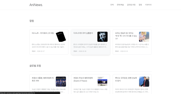 [애니뉴스] 리포터즈 업데이트https://blog.naver.com/ze355/224198058615[애니뉴스] 리포터즈 업데이트 애니뉴스 리포터즈에 전체 기사를 볼 수 있는 리스트 페이지가 추가되었습니다. 애니뉴스에서는 리포터즈를...blog.naver.com