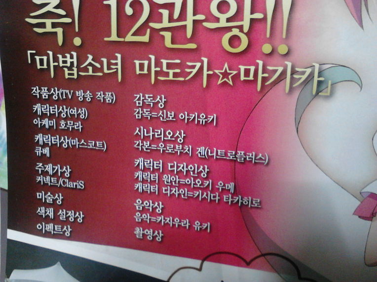 마법소녀 마도카☆마기카. 2011년 제 15회 문화청 미디어 예술제 애니메이션 부문 "대상" 수상