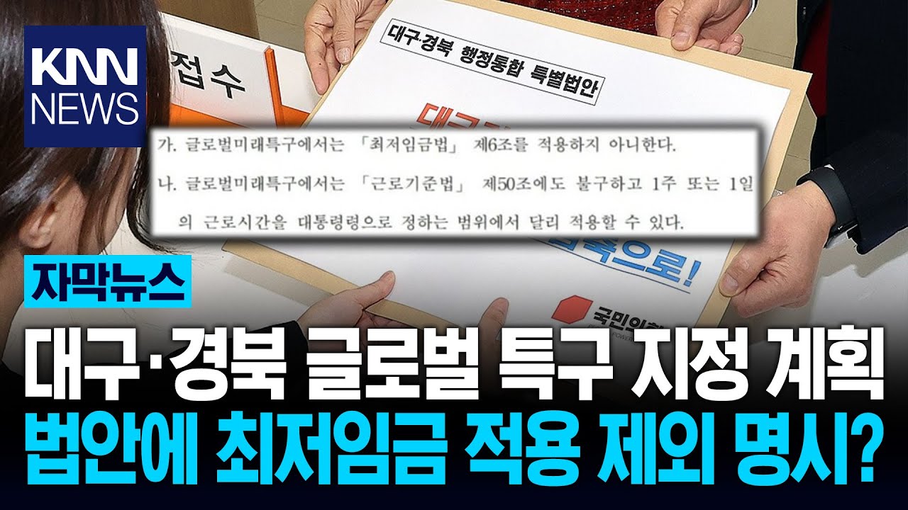 https://youtube.com/v/7nsLBN4RcYA?si=EaWqYDVkTqiTZ5DP국힘 발의 특별법, 노동법 예외 포함 "저임금·장시간 노동 내모는 법" / KNN#knn뉴스 #대구 #경북 #최저임금국민의힘이 발의한 대구·경북 행정 통합 특별법을 두고 논란이 커지고 있습니다. 제보카톡 : 'KNN' 친구추가메일 : knnstorynews@gmail.com adknn@knn.co.kr홈페이지 www.knn.co.kr검색 : KNNyoutube.com