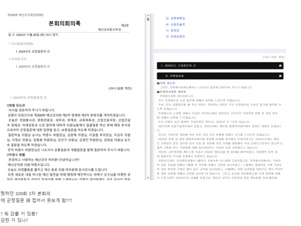 포인트 요약하면 보고 없이 에산 2억 1천 선집행후 후보고 백대표본인을 위한 촬영장 만든거 아니냐 의혹 나옴 그 이후 회의록 폐쇄엔딩 ㅋㅋ 이러니 국감에서 회의록 공개 못하지https://m.ruliweb.com/community/board/300143/read/70625051백종원 사태에 예산군이 손절을 못치는 이유2억 1천이란 예산을 선집행하고 후보고함사업 추진현황에 특정인의 이름을 그대로 게시함세금으로 특정인의 촬영세트장 만들어 주는거라고 대놓고 희의록에서 언급함이게 어딜봐서 지역상생 감사 안했다고 자백함논란되니까 회의록 은폐시킴걍 예산은 답이없음 이런거 파내는게 행정력 낭비임 아니면 세금으로 이짓거리 하는게 낭비임m.ruliweb.com
