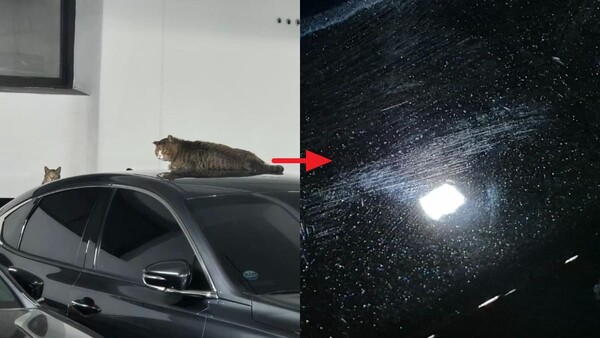 "신차 뽑은 지 얼마 안 됐는데"…지하주차장 고양이 테러 '한숨'
