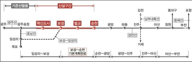 노선 길이가 줄어들면 100분 단축이 130분 단축, 광주-순천 20분대로 이어주고 여순광과 광주가 출퇴근 가능한 단일 생활권이 된다. 벌교를 왜 들려야 하는지 납득할 수가 없다.