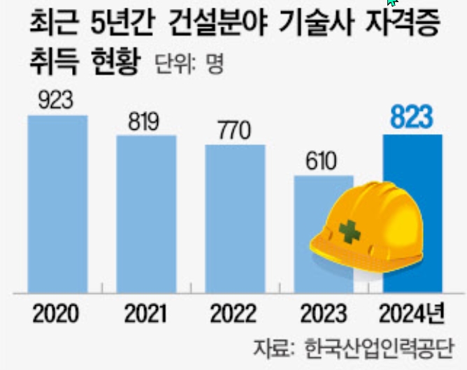 https://m.dnews.co.kr/m_home/view.jsp?idxno=202501201332277640790작년 건설분야 기술사 823명…증가세 둔화 지속건설분야 신규 기술사, 5년째 세자릿수2019년까지 年 1000여명 유입‘대조’중장기 기술인력 부족 따른 혼란 우려[대한경제=서용원 기자]건설분야 기술사 자격증 취득자 증가세가 여전히 더딘 것으로 나타났다. 분야 최고 전문가인 기술사의 유입이 주춤하면서 장기적으로 기술 ...m.dnews.co.kr