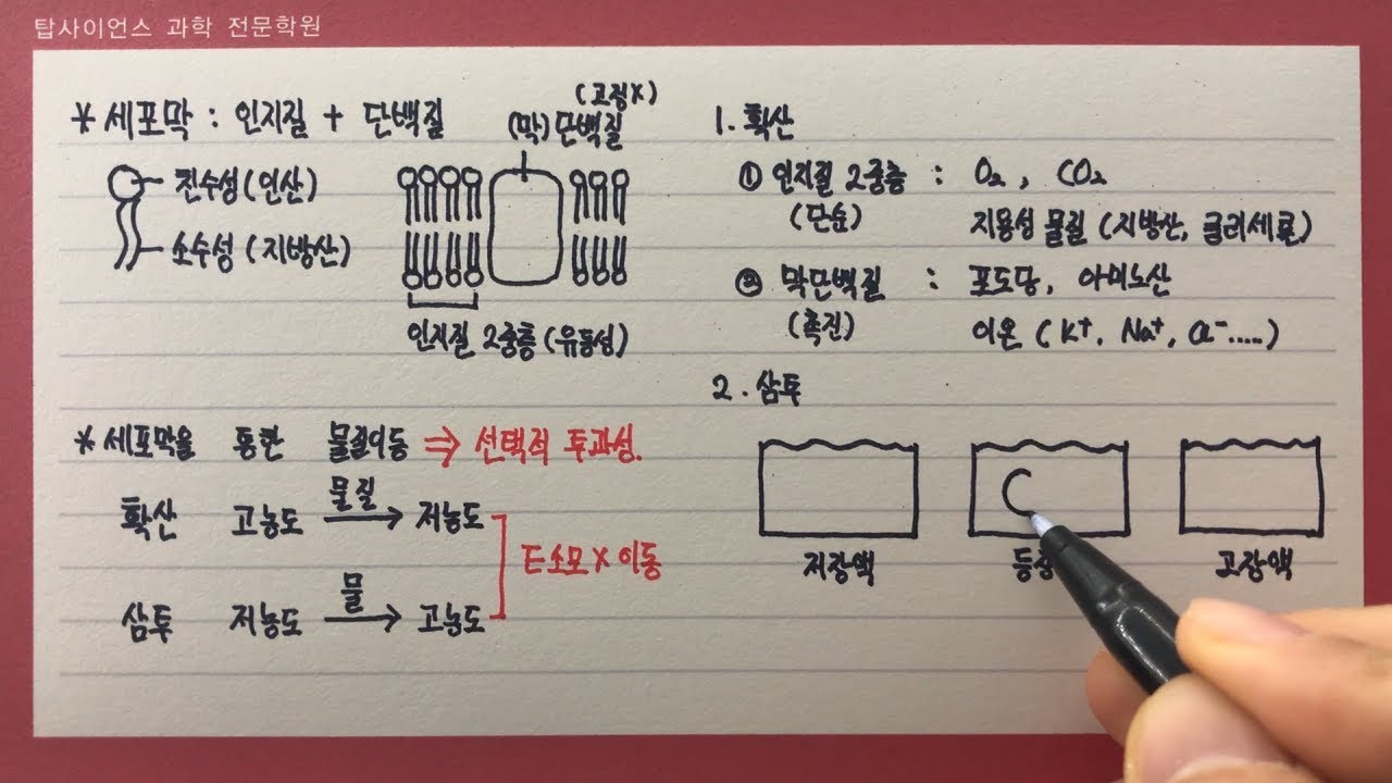 https://youtu.be/2nwjAi8fWDQ?si=piofbVYC6u_I2ySH세포막의 구조와 물질이동(확산, 삼투)[통합과학]세포막과 세포막을 통한 물질이동(확산, 삼투)전체 목록 http://www.top-science.co.kr/n_web/smart_science.php탑사이언스 과학 학원(대구 수성구) http://www.topsa.co.kr음악Kevin MacLeod의 Long Stro...youtu.be진짜 수준높은 명강의네여 ㅜ 이래서 한국학생들이 세계 올림피아드 1,2,3,4 등 다 싹쓸이하는구나 ㅜ 에휴 씨발 나도 1등급 고등어나 2마리 먹으러 가야겠다 ㅜ