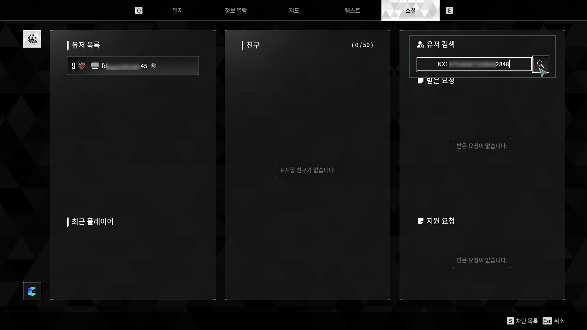 5. 우측 유저 검색에서 란즈미#3630 입력후 엔터 누르기