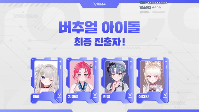 https://vod.sooplive.co.kr/player/164064963[버추얼 아이돌 프로젝트] 본선 최종 5인 선발 (김희철,예린,빕어,건우,메이제이리)김희철,예린,빕어,건우,메이제이리vod.sooplive.co.kr