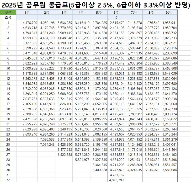 2025년 공무원 봉급표: 주요 변화내용 알아보기