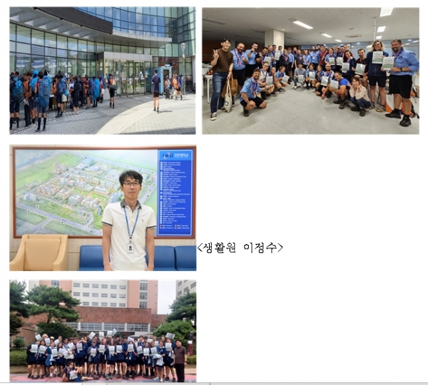 잼버리 대원들의 기숙사 생활을 처음부터 끝까지 지원을 아끼지 않은 12년 경력의 배테랑, 이정수 직원은 "쾌적하고 깨끗한 숙소 제공을 위해 입소 준비부터 퇴소까지 힘들었지만 총장님을 비롯한 학교 구성원 및 시 관계자 등의 모두가 잼버리 대원들이 불편하지 않도록 최대한 지원해 우리 대학에 대해 좋은 이미지를 가져갈 수 있어 기뻤다. 특히 우리 학교를 오랫동안 기억해 줄 것을 기대하며 생활원에서 558명 모두에게 대학 캠퍼스 맵을 전달했는데 좋은 추억으로 간직했으면 좋겠다"고 말했다.
