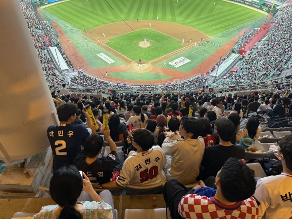 이날 경기의 승부처는 5회였다. 랜더스는 연속 홈런과 안타를 앞세워 단숨에 5점을 올리며 승기를 굳혔다. 이후 안정적인 마운드 운영과 탄탄한 수비로 기아 타선을 무실점으로 틀어막아 5:0 완승을 거뒀다. 인천대학교 학생들은 경기 내내 자리에서 일어나 뜨거운 함성과 응원으로 힘을 보태며 승리의 현장을 함께했다.