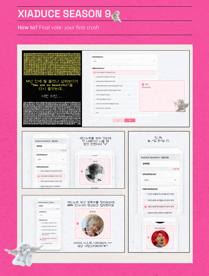 https://x.com/XIADUCE101/status/1812442613666189318?s=19 https://xiarequesthour.tistory.com/188XIADUCE SEASON 9 - 입덕준수 투표 요령 & 후보XIADUCE SEASON 9 - 입덕준수 투표 요령 & 후보xiarequesthour.tistory.com난 왠히괜지 입덕준수 결과가 더 궁금하다 ㅋㅋㅋㅋ