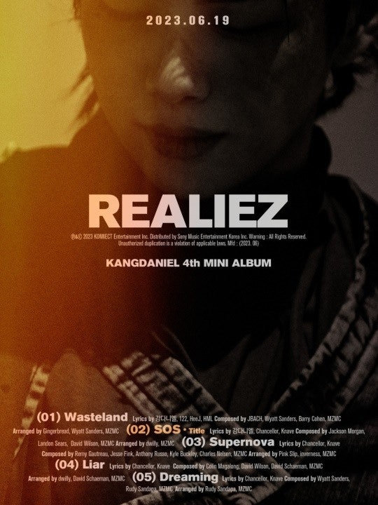 https://naver.me/FuEd9Skz'19일 컴백' 강다니엘, 타이틀곡 'SOS' 작사 참여..디스토피아 그린다강다니엘만의 디스토피아 스토리가 음악으로 결합된다. 커넥트엔터테인먼트는 14일 0시 공식 SNS를 통해 강다니엘의 새 앨범 'REALIEZ' TRACK CREDIT을 공개했다. 마치 영화 포스터와 같은 형태로 앨범 naver.me