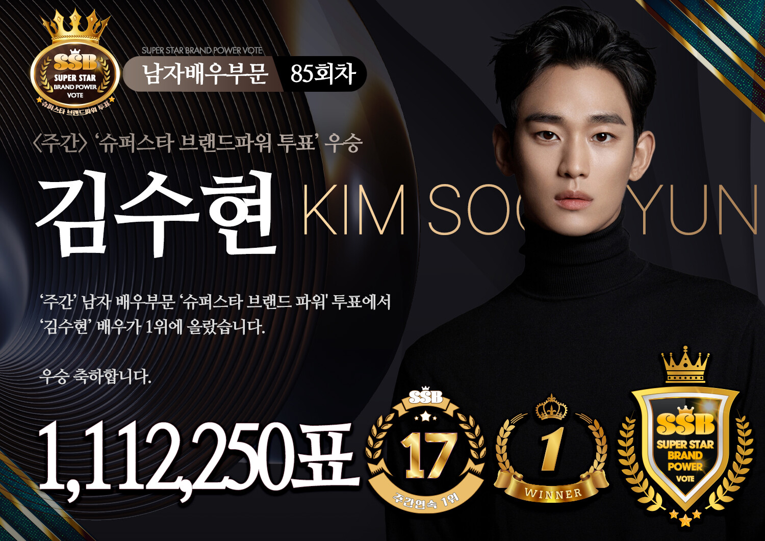 김수현이 85회 남자 배우 부문에서 각각 슈퍼스타 브랜드파워 투표 1위를 차지했다.