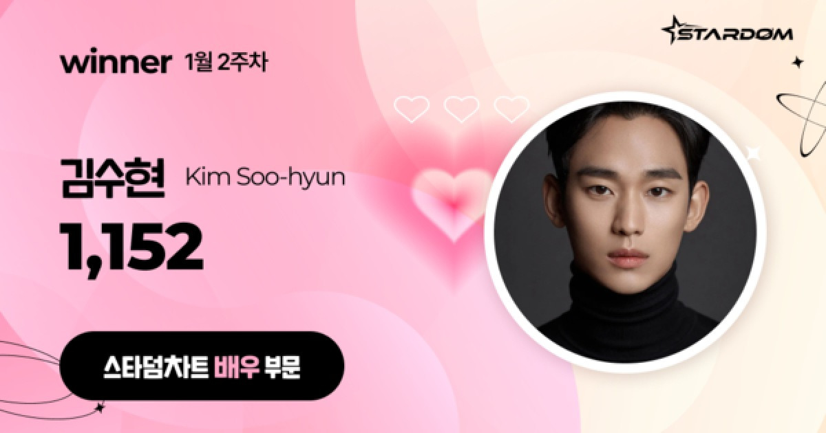 김수현은 26년 1월 2주차(집계기간 1월 12일~1월 18일) '스타덤 차트' 배우 부문 주간랭킹에서 1위를 차지했다. 2025년 10월 3주차에 1위 자리에 오른 후 내리 14주 연속 정상의 자리를 지켰다.
