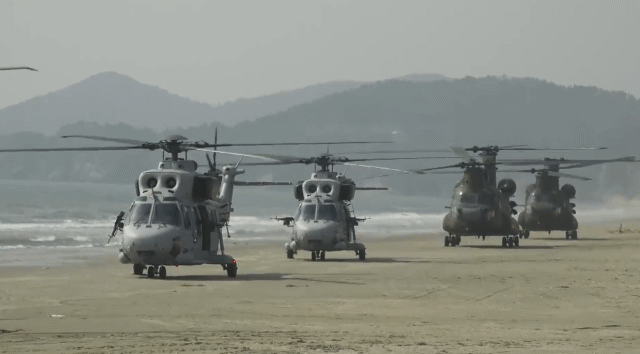 서북도서방위사령부(서방사)가 지난 15일 연평도와 백령도 등 서북도서 일대를 방어하는 훈련에 나선 모습. / 영상=해병대사령부이번에 실시한 증원훈련은 신속기동부대가 서북도서의 임무달성을 위해 부대와 화력을 지원하는 훈련이다. 이날 훈련에는 해병대 신속기동부대와 해군 상륙함(LST-Ⅱ), 해병대 상륙기동헬기(MUH-Ⅰ)·상륙돌격장갑차(KAAV) 등 해군·해병대 신속기동부대가 참가했다. 또 육군 특전사와 공격헬기(AH-64)·기동헬기(CH-47, UH-60) 등 합동전력까지 참가해 서북도서 방위태세 강화를 위한 증원 절차를 숙달했다.