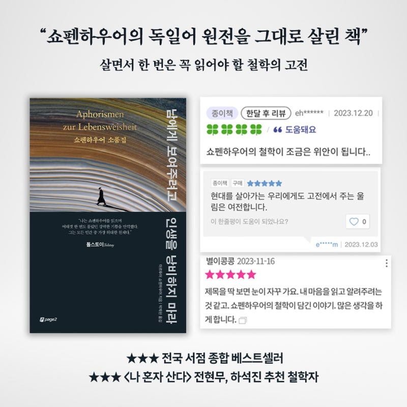 남에게 보여주려고 인생을 낭비하지 마라저자쇼펜하우어출판페이지2북스발매2023.10.30.