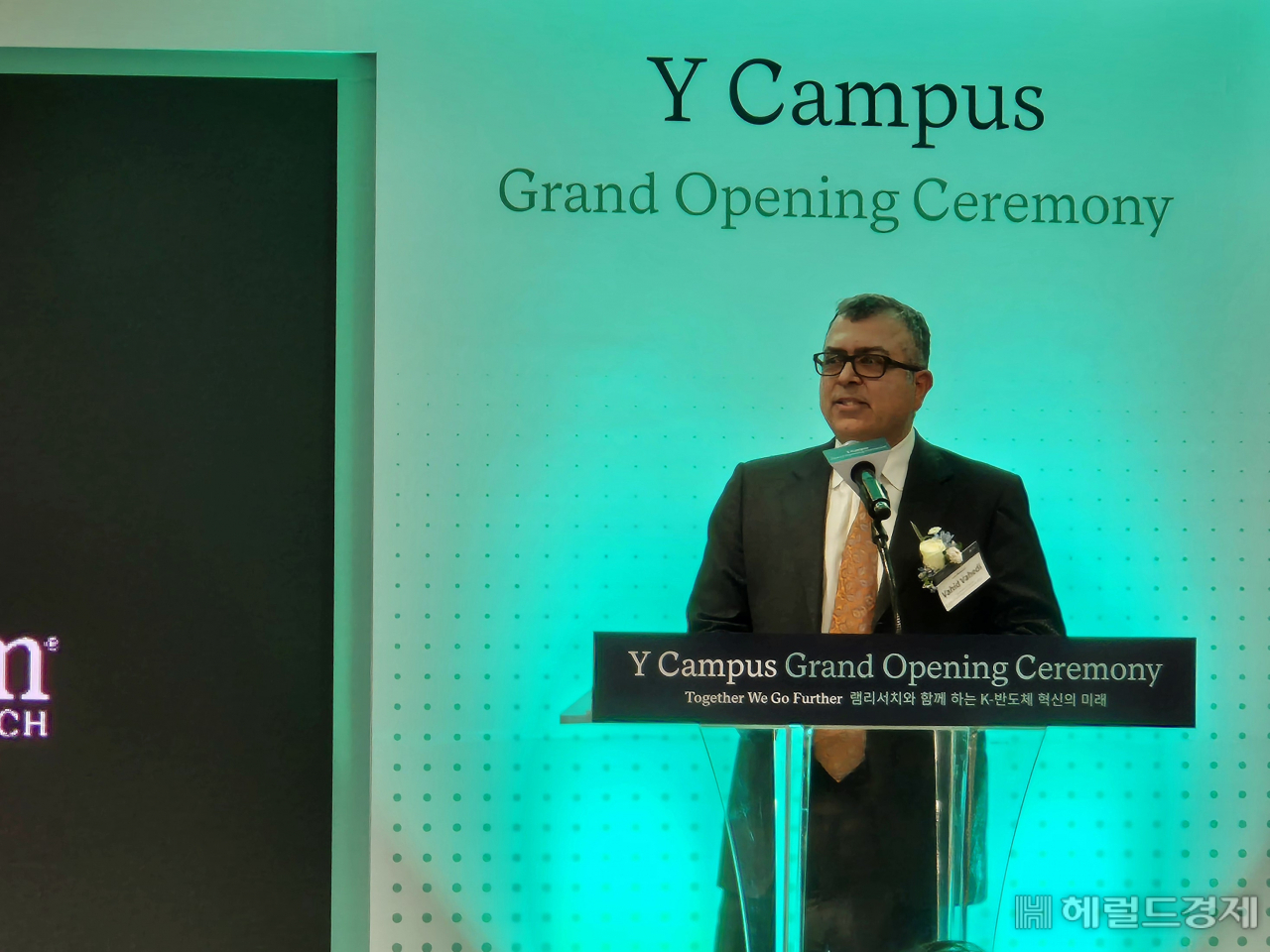 바히드 바헤디 램리서치 최고기술책임자(CTO)가 8일 경기도 용인시 기흥구에서 열린 램리서치 용인 캠퍼스 개관식에서 한국 반도체 인재양성을 위한 솔루션을 소개하고 있다. 용인=김현일 기자업계 전문가들은 반도체 기업들이 생산시설 확장과 인프라 구축에 집중하고 있지만 유능한 인력 확보가 전제되지 않는 한 유의미한 경쟁력을 갖기 어려울 것이라고 지적한다.