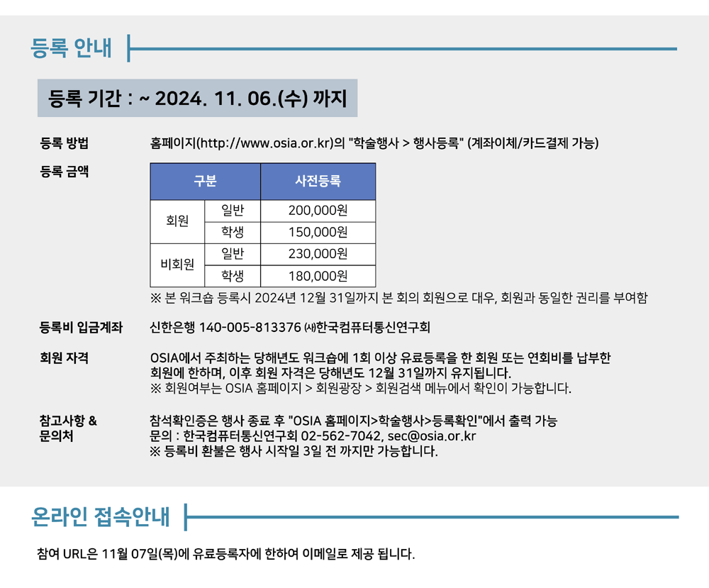- 문의 : 한국컴퓨터통신연구회 02-562-7042, sec@osia.or.kr