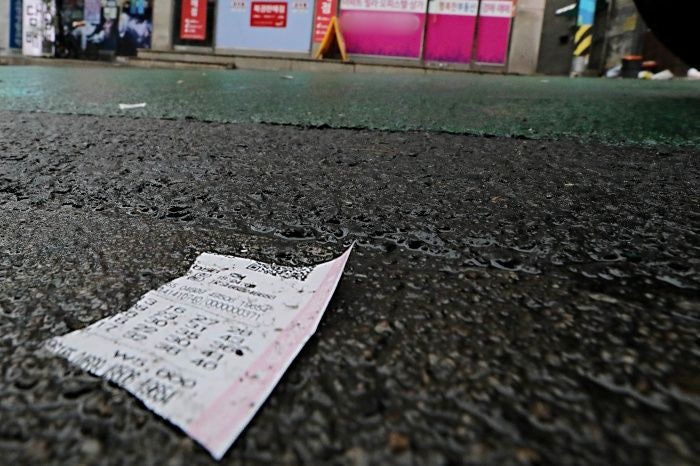 저거 사놓고 주머니에 넣은채 세탁기에 넣고 돌린거임 이세상에 없는 로또용지라고 생각하면 된다.