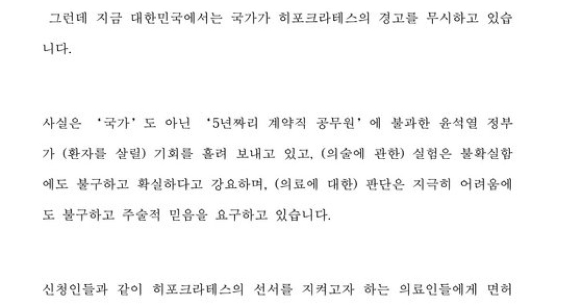 https://v.daum.net/v/20240402140924591히포크라테스 꺼낸 의대생 “5년 계약직 尹정부, 주술적 믿음 요구”히포크라테스 꺼낸 의대생 “5년 계약직 尹정부, 주술적 믿음 요구”v.daum.net"사실은 ‘국가’도 아닌 ‘5년짜리 계약직 공무원’에 불과한 윤석열 정부""5급 말단 공무원에 이은 "5년짜리 계약직 공무원에 불과" ㄷㄷ