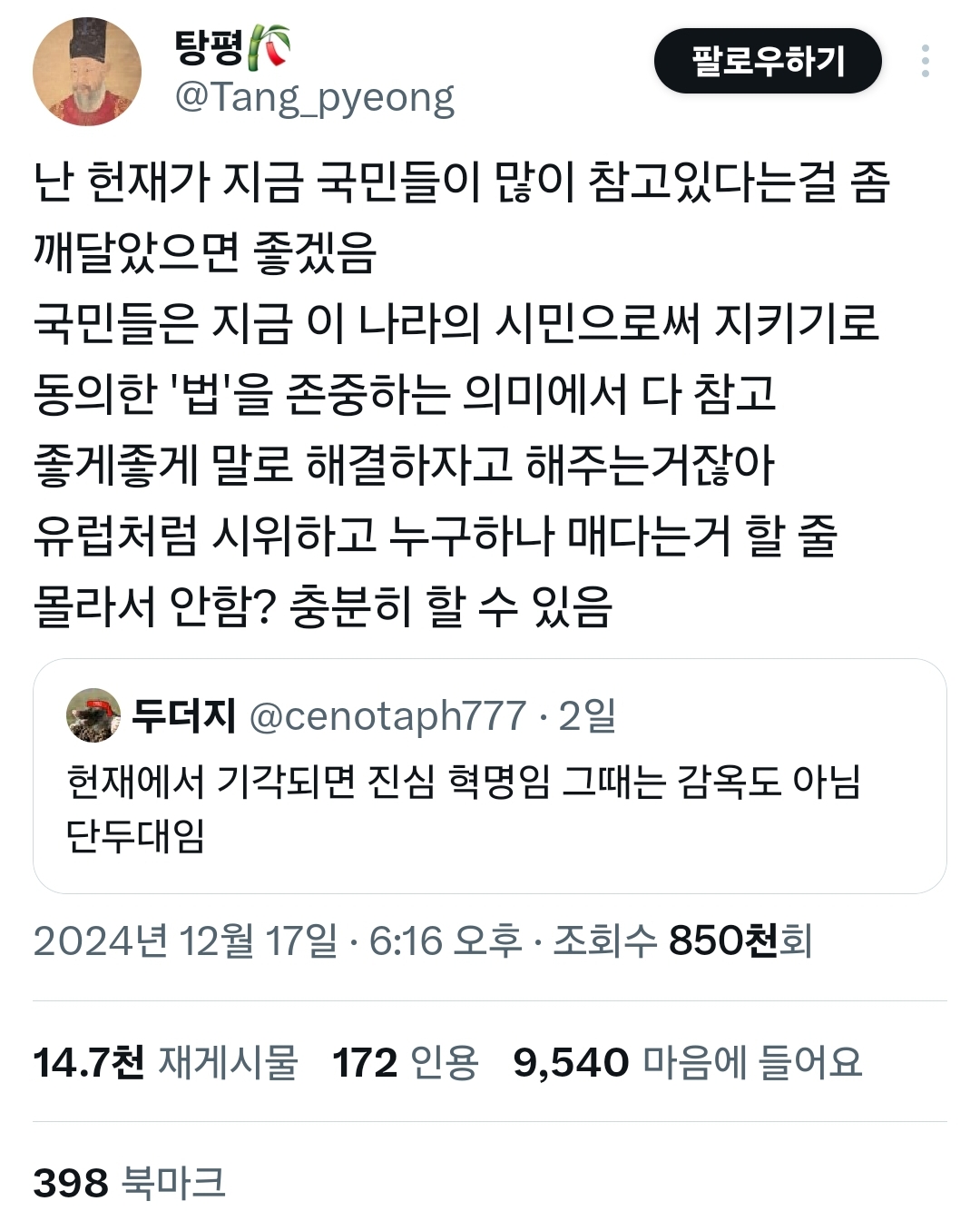 실패하면 내란이고 성공하면 혁명 아닙니까