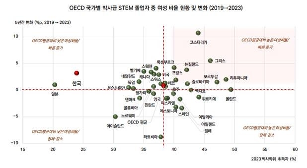 한국 여성 이공계 박사 비중 23.9%…OECD 최하위권