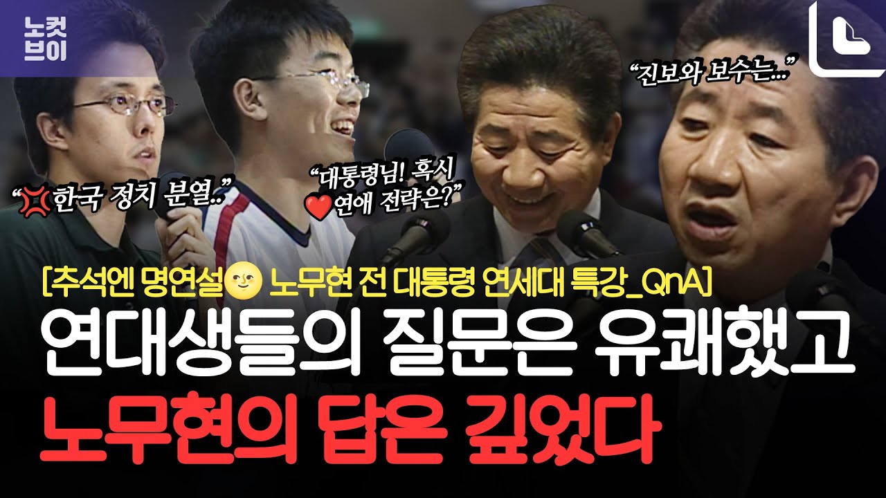 https://youtu.be/oCIubWQrBAI?si=2rk4XnqaOJeKS5fs[추석엔 명연설?] 노무현 전 대통령 2004년 연세대 특강 _풀영상|2025년 지금 봐도 소름..."지도자는 진실을 말해야 한다"추석 특집으로 시대를 넘어 통하는 명연설을 준비했습니다. 노무현 전 대통령의 연세대 특강은 지금 들어도 유효합니다—말과 행동의 일치(신뢰), 대화와 타협(절차), 신념과 판단력(리더십), 그리고 의제를 잡는 힘까지. 2025년의 뉴스와 현실 위에 그대로 얹어 보며, 우리가 무엇을 ...youtu.behttps://youtu.be/tkZGI2t19IY?si=OuiM6XYf8ZsBRP7A[추석엔 명연설?] 노무현 전 대통령 2004년 연세대 특강 _QnA 풀영상|연대생들의 질문은 유쾌했고 노무현의 답은 깊었다추석 특집으로 시대를 넘어 통하는 명연설을 준비했습니다. 노무현 전 대통령의 연세대 특강은 지금 들어도 유효합니다—말과 행동의 일치(신뢰), 대화와 타협(절차), 신념과 판단력(리더십), 그리고 의제를 잡는 힘까지. 2025년의 뉴스와 현실 위에 그대로 얹어 보며, 우리가 무엇을 ...youtu.be신규 소스를 친히...