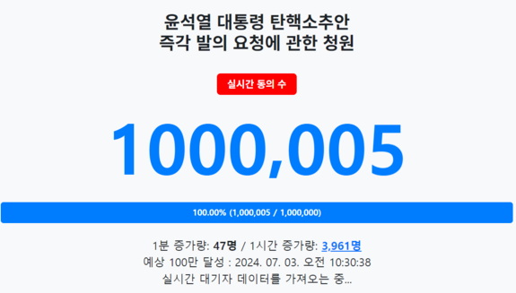 윤석열 대통령 탄핵 청원 100만 명 돌파+✍+링크https://blog.naver.com/comeparan/223499764697윤석열 대통령 탄핵 청원 100만 명 돌파 윤석열 대통령 탄핵 청원 100만 명 돌파! 국민의 목소리가 향하는 방향은? 윤석열 대통령 탄핵 국회 국민청...blog.naver.com