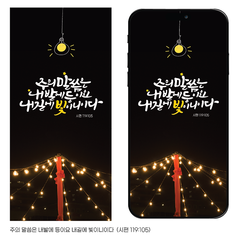 스마트폰 배경화면 무료제공 - 주의 말씀은 내발에 등이요성결말씀 (시편 119:105) -