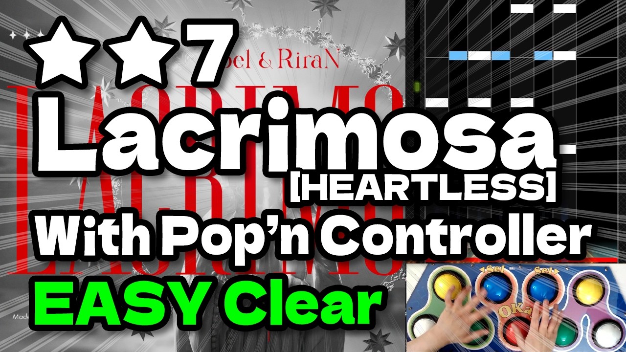 https://youtu.be/3lSNV6agFPg[BMS] ★★7 Lacrimosa [HEARTLESS] EASY CLEAR B (With Pop'n Controller) L A C R I M A S H !!!!!!!#発狂BMS #BMS #ポップンyoutu.be워낙 BPM이 높은데다가 밀도가 균일해서 뭉텅이로 보고 노트 한두개씩 빼가면서 뭉개는게 통하네요