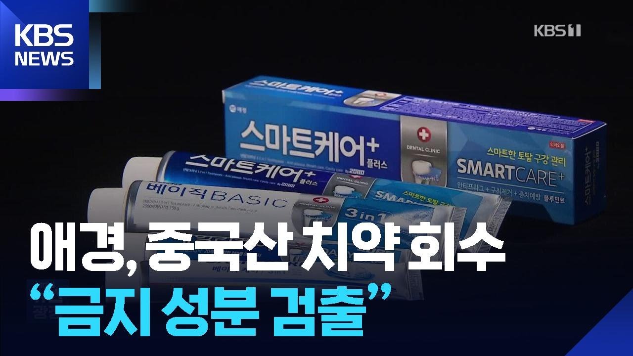 https://youtu.be/96o1OcG-e48?si=yO51JRBTib-D6Oas‘중국 생산’ 2080치약 6종 자발적 회수…애경 “금지 성분 검출” / KBS 2026.01.08.애경산업이 판매한 2080 치약 제품 여섯 종에서 구강용품에 쓸 수 없는 물질이 나와 자발적 회수 조치에 들어갔습니다. 해당 치약은 모두 중국에서 생산된 제품으로, 국내에서 생산된 나머지 2080 치약은 문제가 없다고 애경산업 측은 설명했습니다. 박민경 기자가 보도합니다. [리포트...youtu.be