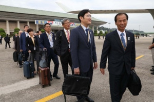 이재용 회장은 2018년 9월 당시 문재인 대통령이 남북 정상회담을 위해 평양을 방문할 때 최태원 SK그룹 회장, 구광모 LG그룹 회장, 현정은 현대그룹 회장 등 재계 인사들과 동행, 김정은을 만났다.