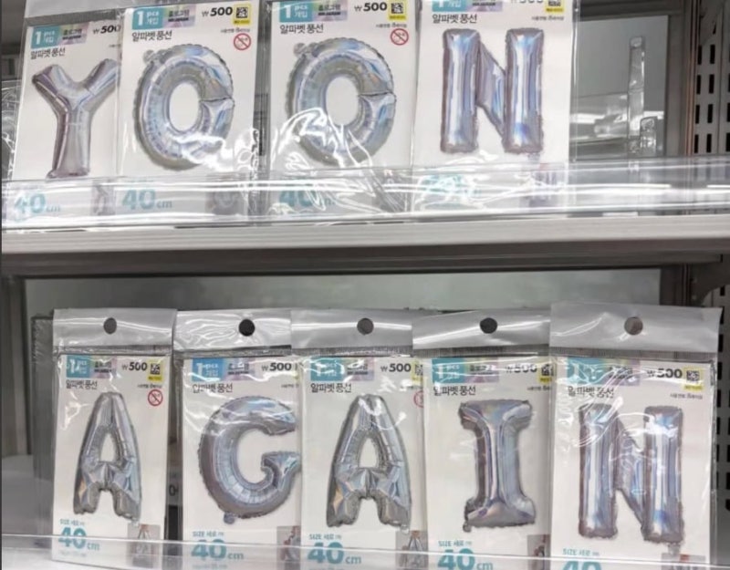 https://n.news.naver.com/article/023/0003956396다이소 매장서 ‘YOON AGAIN’ 만들고 인증...온라인서 갑론을박윤석열 전 대통령의 지지자들이 다이소에 배치된 물품을 활용해 ‘YOON YAGAIN’(윤 어게인)이라는 문구를 만든 후 사진을 찍어 인증샷으로 온라인에 올려 논란이 일고 있다. 30일 관련 업계에 따르면 최근 윤 전n.news.naver.com윤석열 전 대통령의 지지자들이 다이소에 배치된 물품을 활용해 ‘YOON AGAIN’(윤 어게인)이라는 문구를 만든 후 사진을 찍어 인증샷으로 온라인에 올려 논란이 일고 있다. 윤카는 이제 역대급 meme이 된듯...