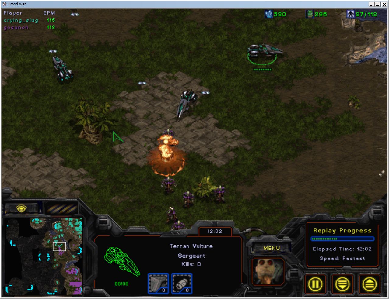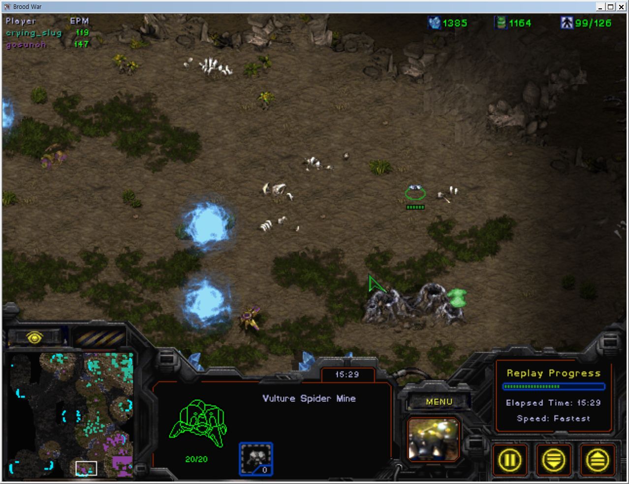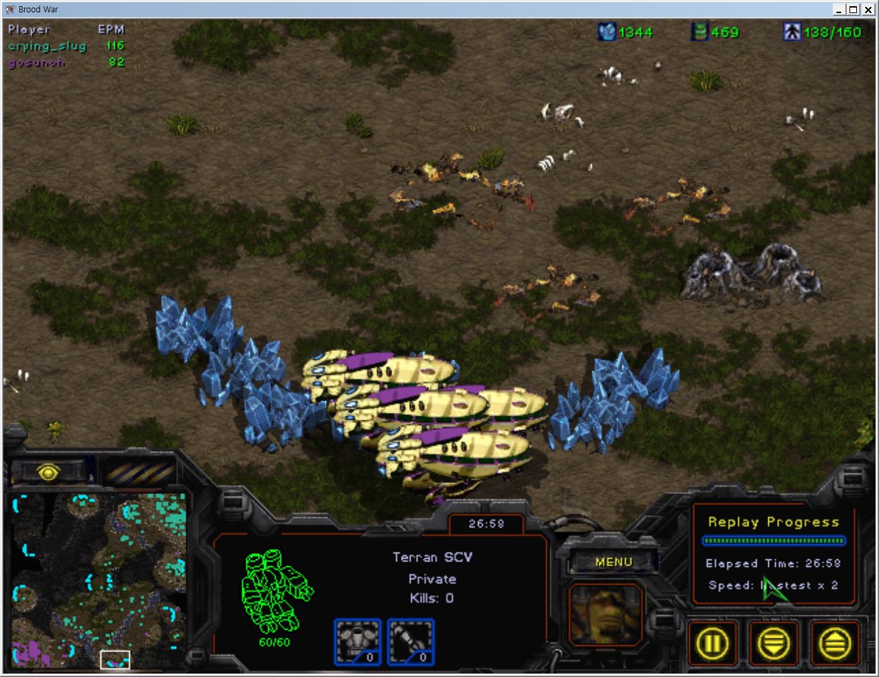 1시 테란 스린이 5시 상대방입니다.