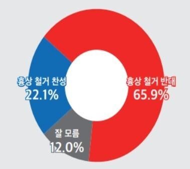 여론조사 결과에 따르면 전체 응답자의 65.9%는 육사 내에 있는 홍범도 장군 흉상을 철거하는 것에 대해 '반대한다'고 답했다. 반면 '찬성한다'고 답한 응답자는 22.1%였고 '잘 모르겠다'는 12.0%로 집계됐다.
