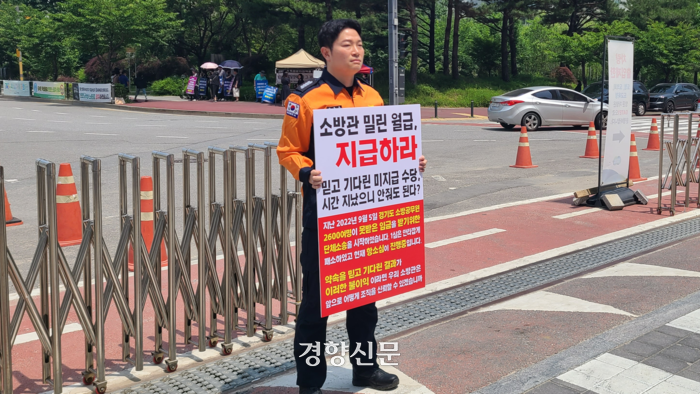https://n.news.naver.com/mnews/article/032/0003300576?sid=102“소방관 2600명의 밀린 임금 지급하라”… 거리로 나온 소방관“소방관 2600명이 아직 임금을 받지 못하고 있습니다. 마땅히 받아야 할 우리의 임금을 지급하십시오.” 5일 경기도청 앞에서 피켓을 든 정용우 소방을사랑하는공무원노조 경기본부 위원장은 이같이 외쳤다. 피켓에는 “소n.news.naver.com조선시대 하급관리 녹봉 밀리는것도 아니고 나라꼴 참 뭐같네