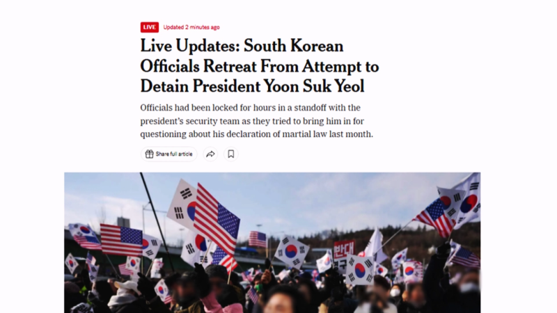 https://n.news.naver.com/article/437/0000425223?cds=news_edit외신 "윤, 비참한 생존자"…'성조기 흔드는 지지자들' 분석도외신들도 윤 대통령에 대한 체포영장 집행 과정을 실시간으로 전했습니다. 특히 윤 대통령 지지자들이 체포 반대를 외치면서 왜 미국 성조기를 흔드는 건지 궁금해 하기도 했습니다. 이지은 기자입니다. [기자] 이른 아침 n.news.naver.com지정생존자의 반대....비참한생존자 ㅋㅋㅋㅋ