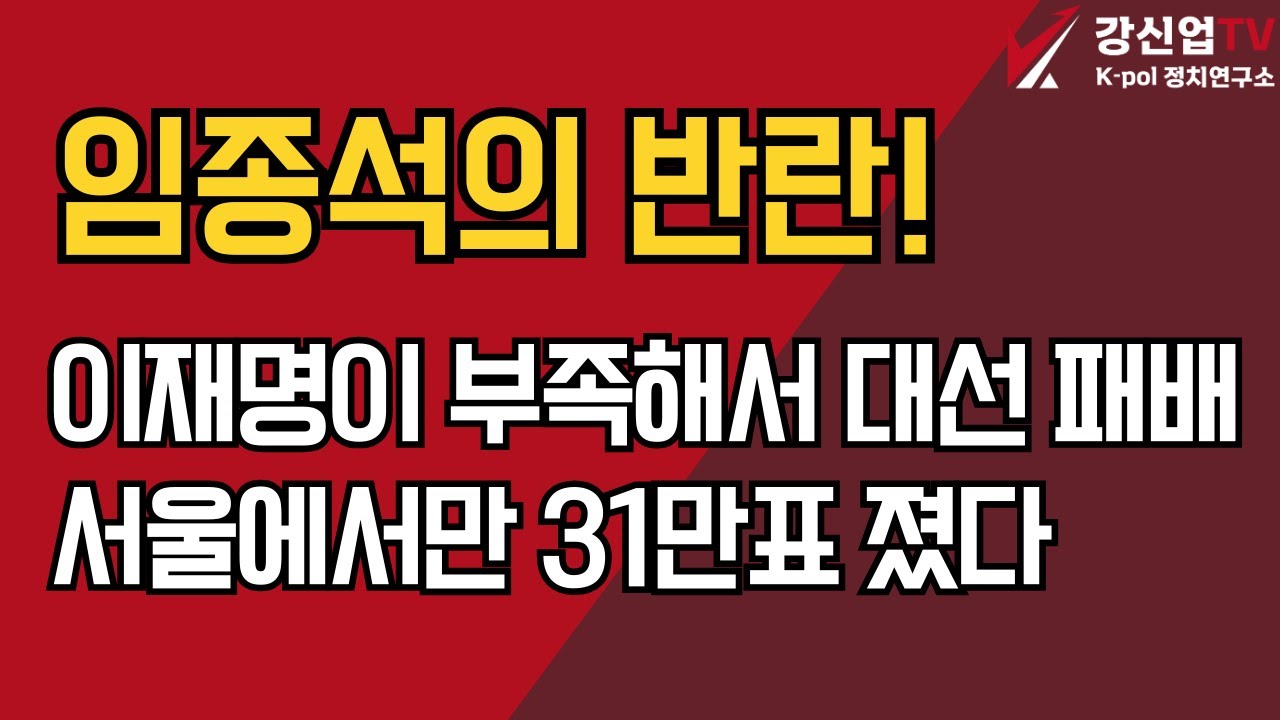 임종석의 반란!/이재명이 부족해서 대선 패배 서울에서만 31만표 졌다 임종석의 반란!/이재명이 부족해서 대선 패배 서울에서만 31만표 졌다youtu.behttps://youtu.be/ZUJFJQ2JsVQ