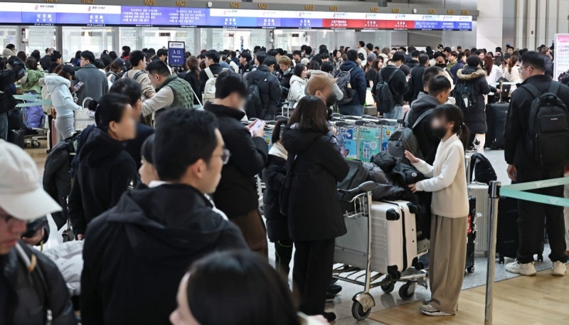 실제 공항에는 12일부터 인파가 몰리기 시작했다. 인천국제공항공사는 이번 설 연휴 기간(13~18일) 인천국제공항에 출입국 여객(환승객 제외) 122만명이 몰릴 것으로 전망했다. 일 평균 20만4000명 수준이다. 지난해 설 연휴(1월24일~2월2일)에는 총 201만2000명이 이용해 일 평균 20만1200명이었다. 전년보다 기간이 짧지만, 하루 평균으로 보면 더 많은 인원이 빠져나가는 셈이다.