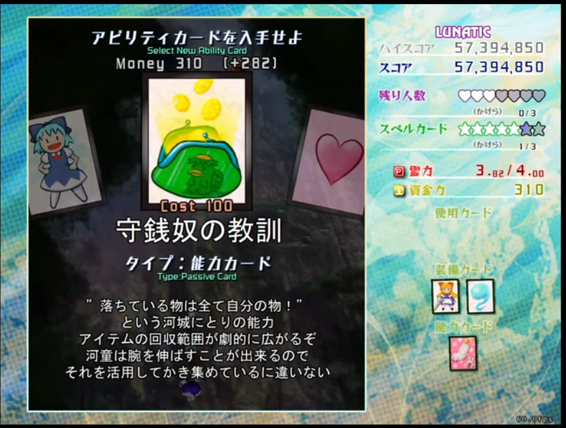 스펠카드 취득 성공시에 잔기 조각이 출현한다