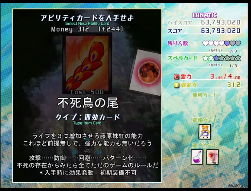 잔기 라이프를 3개 증가시켜주는 후지와라노 모코우의 능력