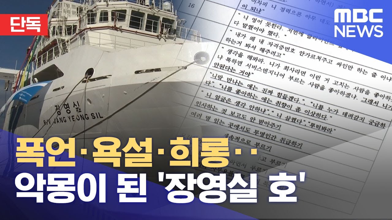 https://youtube.com/v/xcCsD3gP7Ak[단독] 폭언·욕설·희롱‥악몽이 된 '장영실 호' (2023.07.25/뉴스데스크/MBC)바다 위에서 해양 연구와 실험을 수행하는 선박인 '장영실 호'에서 여성 선원이 스스로 목숨을 끊으려 한 일이 벌어졌습니다.해당 선원은 선임자에게 폭언과 욕설, 성희롱성 발언 등, 지속적인 괴롭힘을 당해왔다고 폭로했습니다.https://imnews.imbc.com/replay/202...youtube.comㅋㅋㅋ 내가 배 안타는 이유 ㅂㅅ 같은 인간들이 한둘이 아님