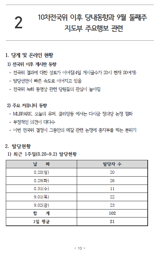 1. 이렇게 상무위 때 마다 온라인 커뮤니티와 당원 게시판 매주 보고 하면서 대처가 이 모양...