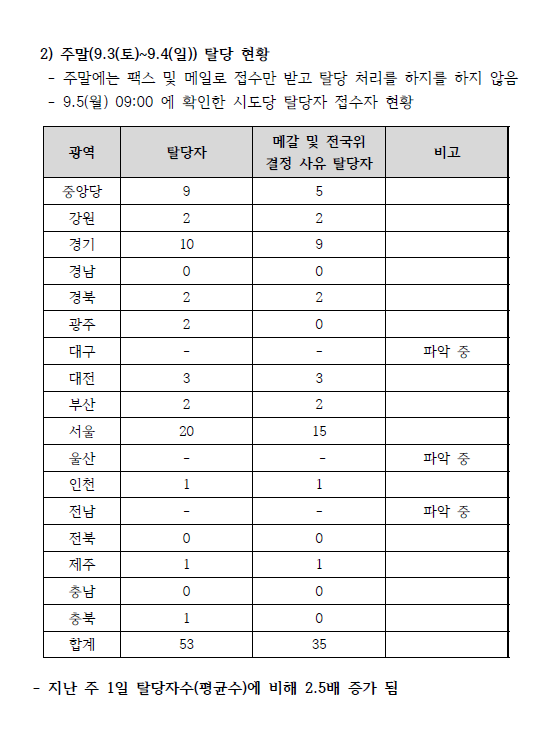 3.그 와중에 메갈,전국위 때문에 탈당숫자 틀림...53명 탈당자 중에 40명인데 35명으로 표기(맨날 틀리는 거 보면 일부러 그러는 듯?)