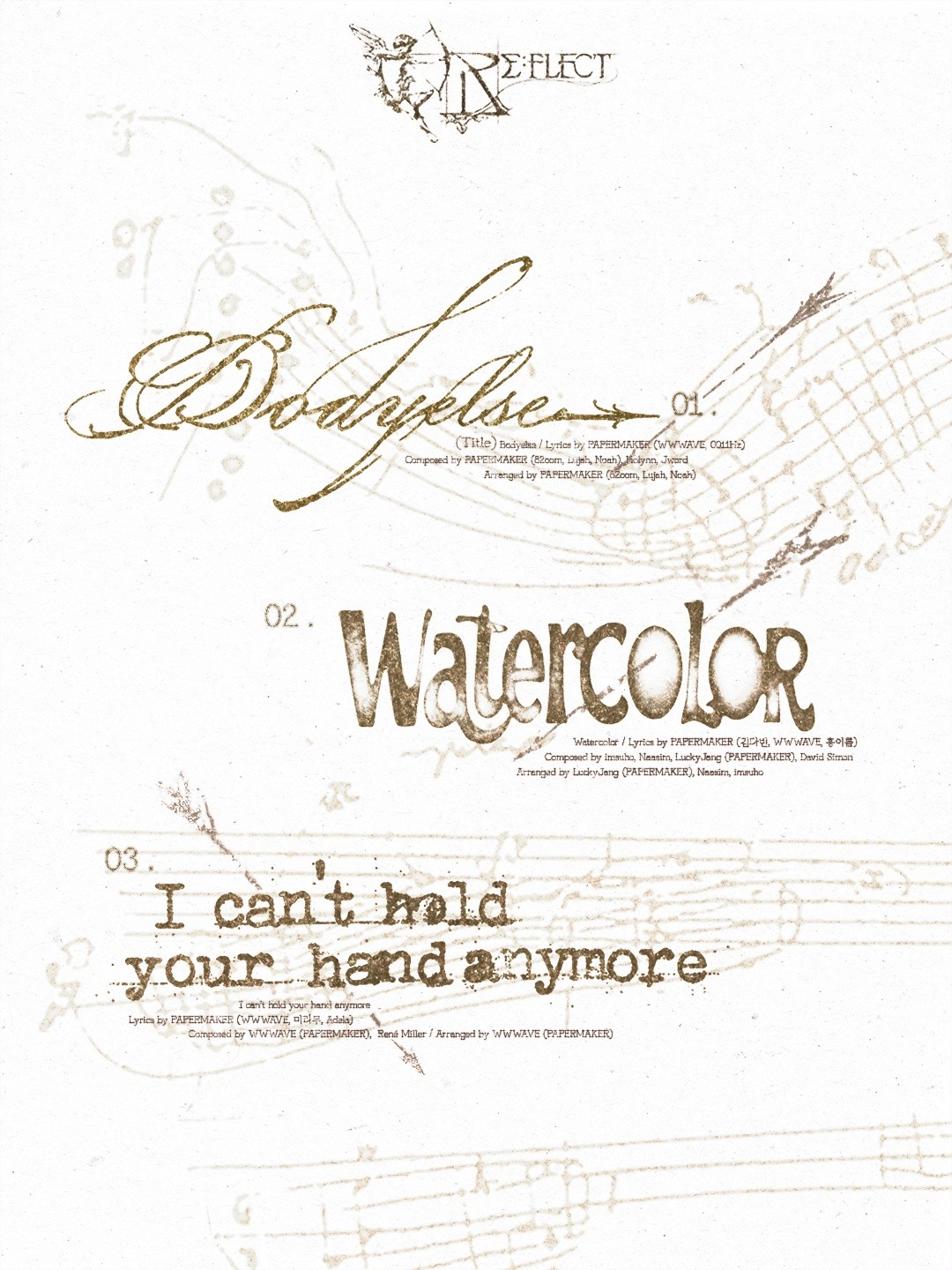 신보에는 총 3곡이 담긴다. 타이틀곡 '바디엘스'(Bodyelse)와 '워터컬러'(Watercolor), '아이 캔트 홀드 유어 핸드 애니모어'(I can't hold your hand anymore) 등이다.