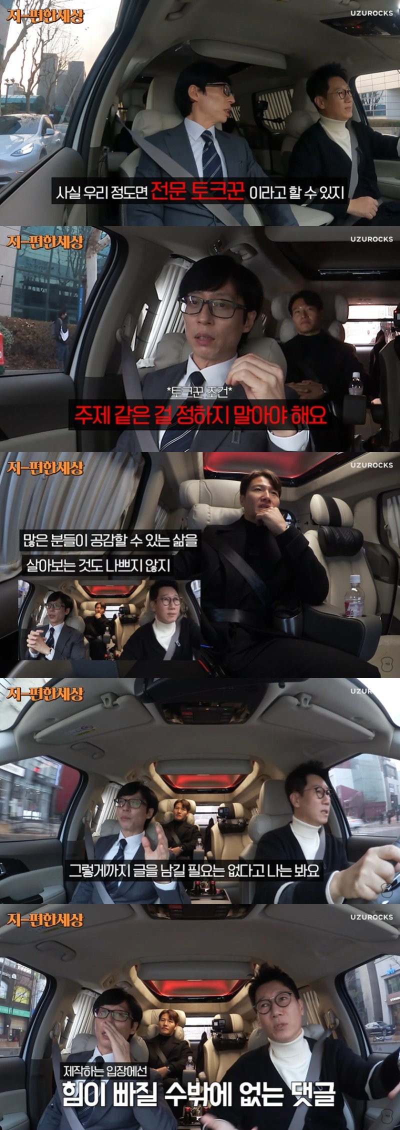 https://n.news.naver.com/entertain/article/076/0003974973유재석 "'노잼' 악플, 굳이 달 필요 있나...그런 관심 필요 없다" ('지편한세상')[종합]'지편한 세상' 유재석이 악플에 대한 소신 발언을 했다. 유튜브 채널 '지편한 세상'에서는 24일 '데려다주는 건, 핑계고'라는 제목의 영상이 게재됐다. 이날의 게스트는 유재석과 김종국. 유튜브 콘텐츠 '핑계고' 녹n.news.naver.comㅈㄴ 맞는말