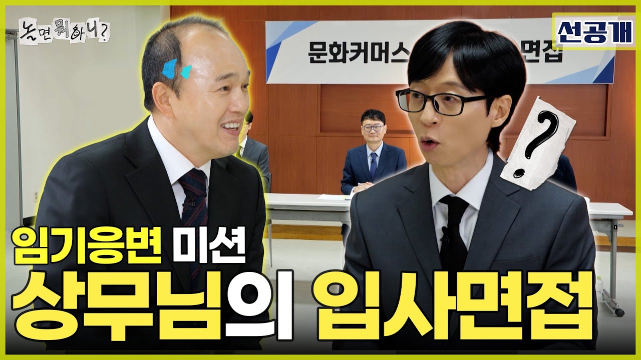 ㄱㅅㄱㅅ 문화 커머스 주제로 신입사원 면접보기 체험으로 재치 순발력 엉뚱웃음만발하겠네 놀뭐 존좋 본방사수 파이팅!!!